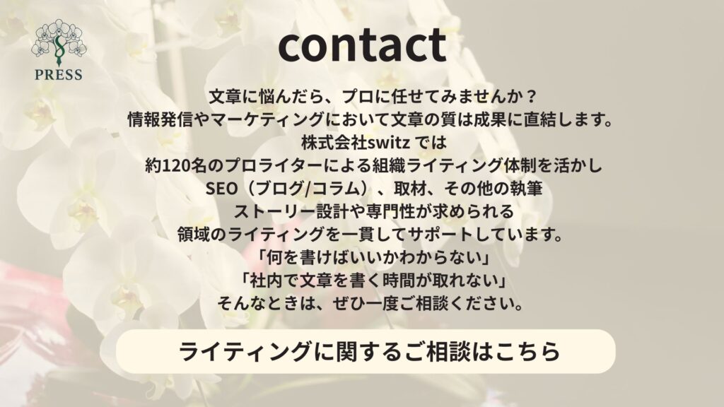 ※胡蝶蘭pressはライター会社株式会社switz(スイス)が運営するサイトです。